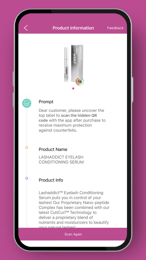 The app will confirm whether your product is authentic or not recognized.