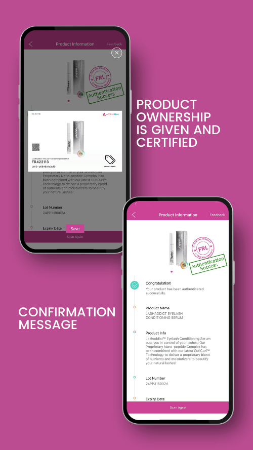 Every single FRL product has its own QR Code unique to the very product you are holding in your hand. This QR Code is secured using bank-grade blockchain security, is not shared between products and can only be authenticated once.